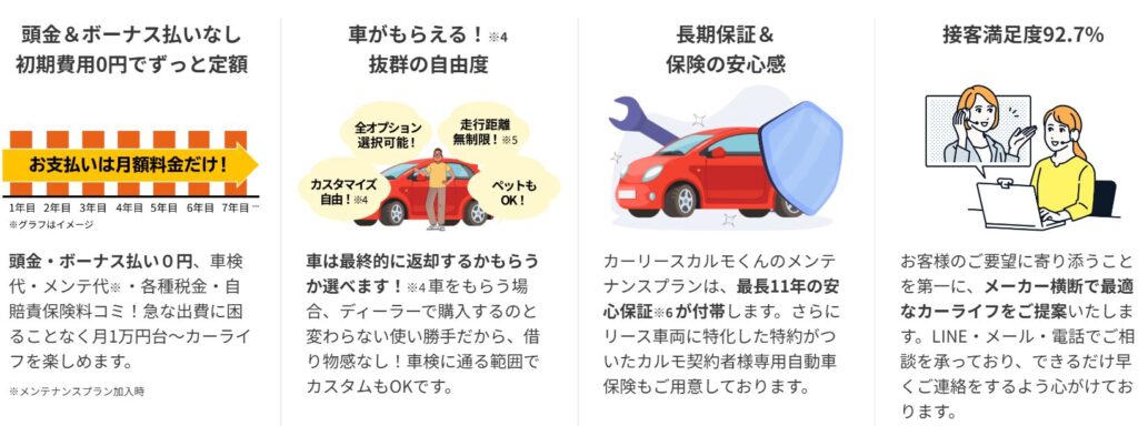 | 4位 | カーリースカルモくん![]() | ◎ 安い | 0円 | あり | オプションで可 |