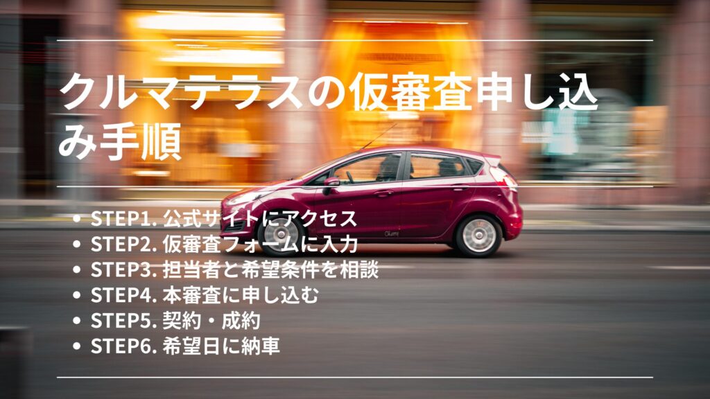 ファイントラストより条件が分かりやすい、クルマテラスの仮審査申し込み手順はこちらです。
