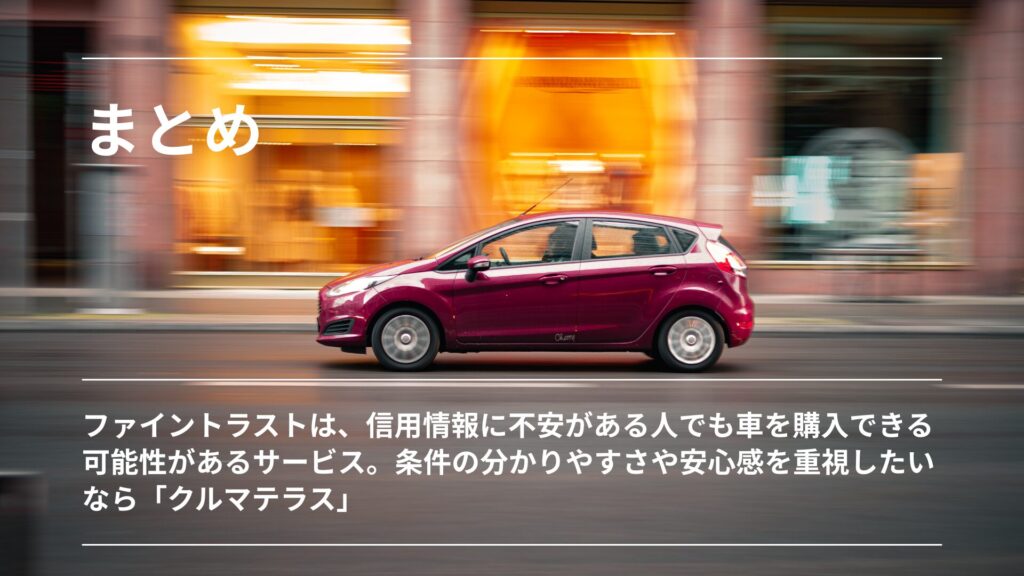 ファイントラストは、信用情報に不安がある人でも車を購入できる可能性があるサービスです。