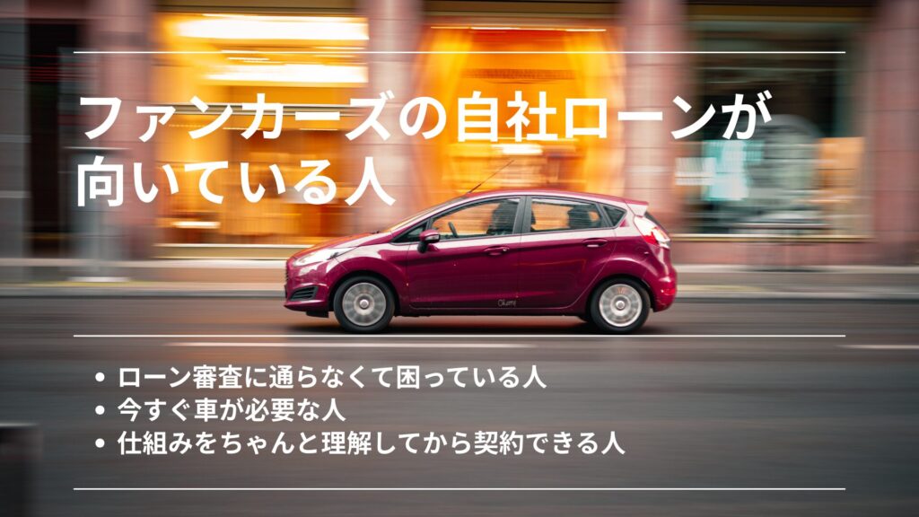 この記事を読むだけで、「ファンカーズの自社ローンで仮審査をするべきか」がハッキリ判断できるようになります。