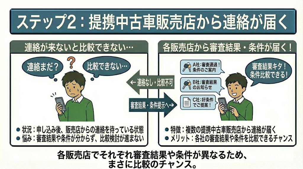 ステップ2:提携中古車販売店から連絡が届く